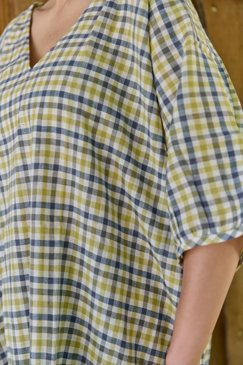 La tunique Naonica en khadi de coton est un petit bijou de légèreté et de savoir-faire. Très confortable, c’est une création filée et tissée main, aux coloris subtils.