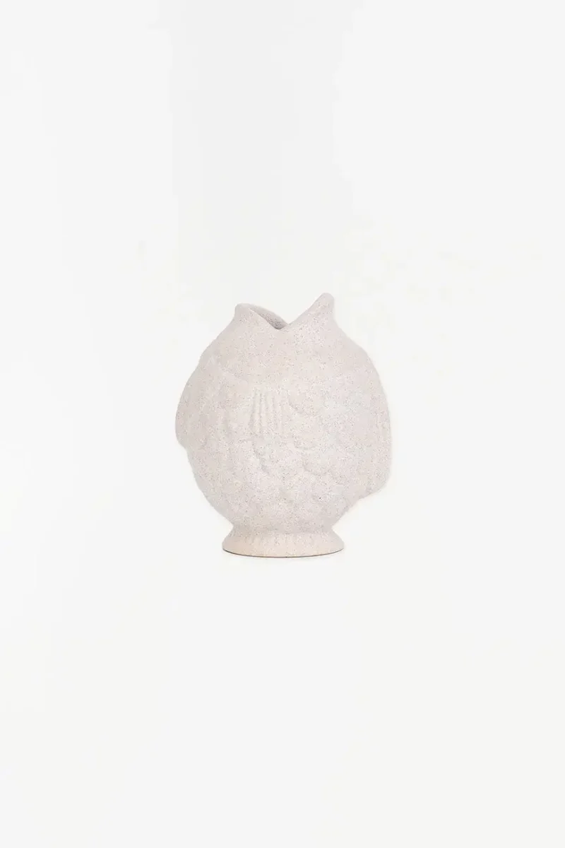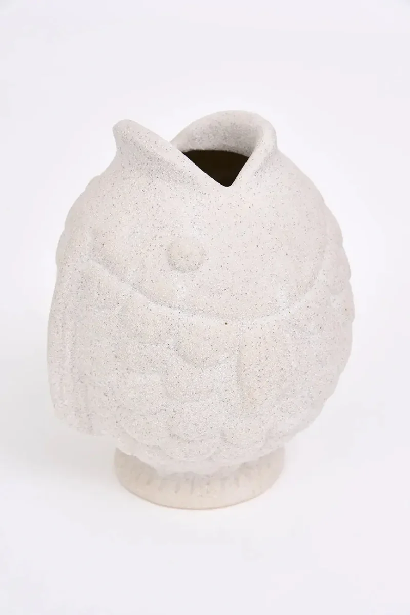 Vasija con forma de pez en porcelana pequeña, color blanco, una pieza elegante y versátil que añade un toque marinero y sofisticado a tu hogar. Fabricada en porcelana de alta calidad, esta vasija puede usarse como florero para mostrar tus plantas o flores favoritas, o simplemente como un elemento decorativo único.