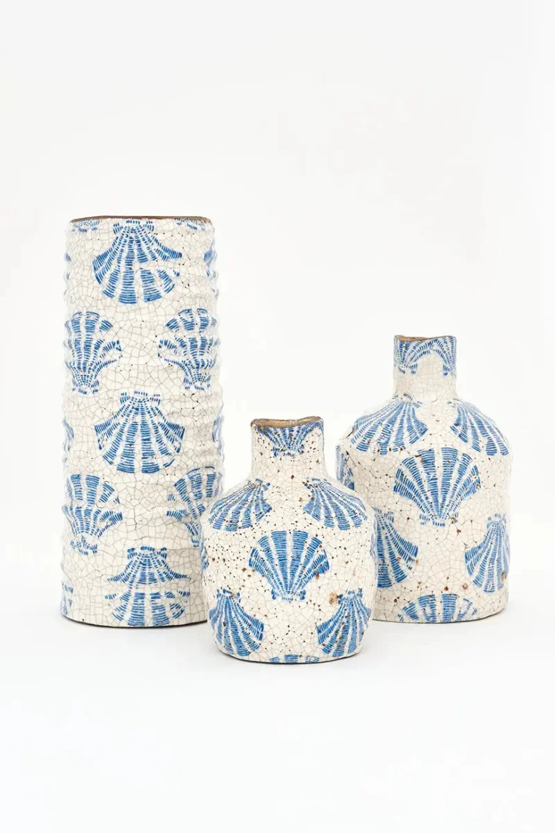 Esta elegante vasija de terracota destaca por sus delicados estampados de conchas realizados a mano, que evocan la serenidad y belleza de las costas. Su acabado artesanal y textura natural aportan calidez y autenticidad a cualquier espacio. Ideal como elemento decorativo o para exhibir flores secas, esta pieza añade un toque costero y rústico a la decoración de tu hogar.