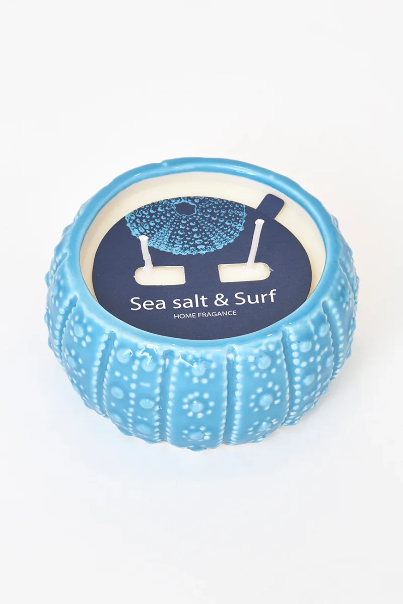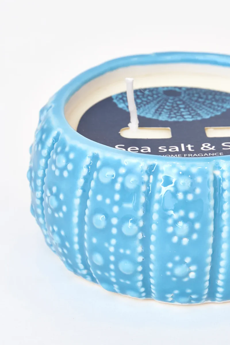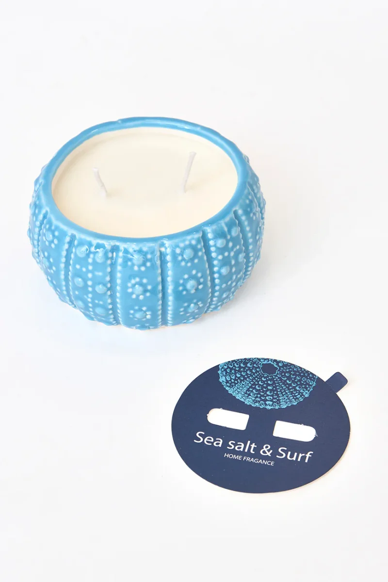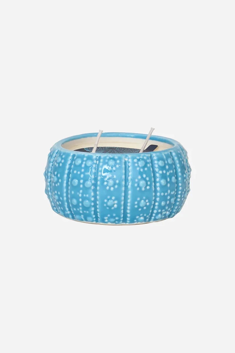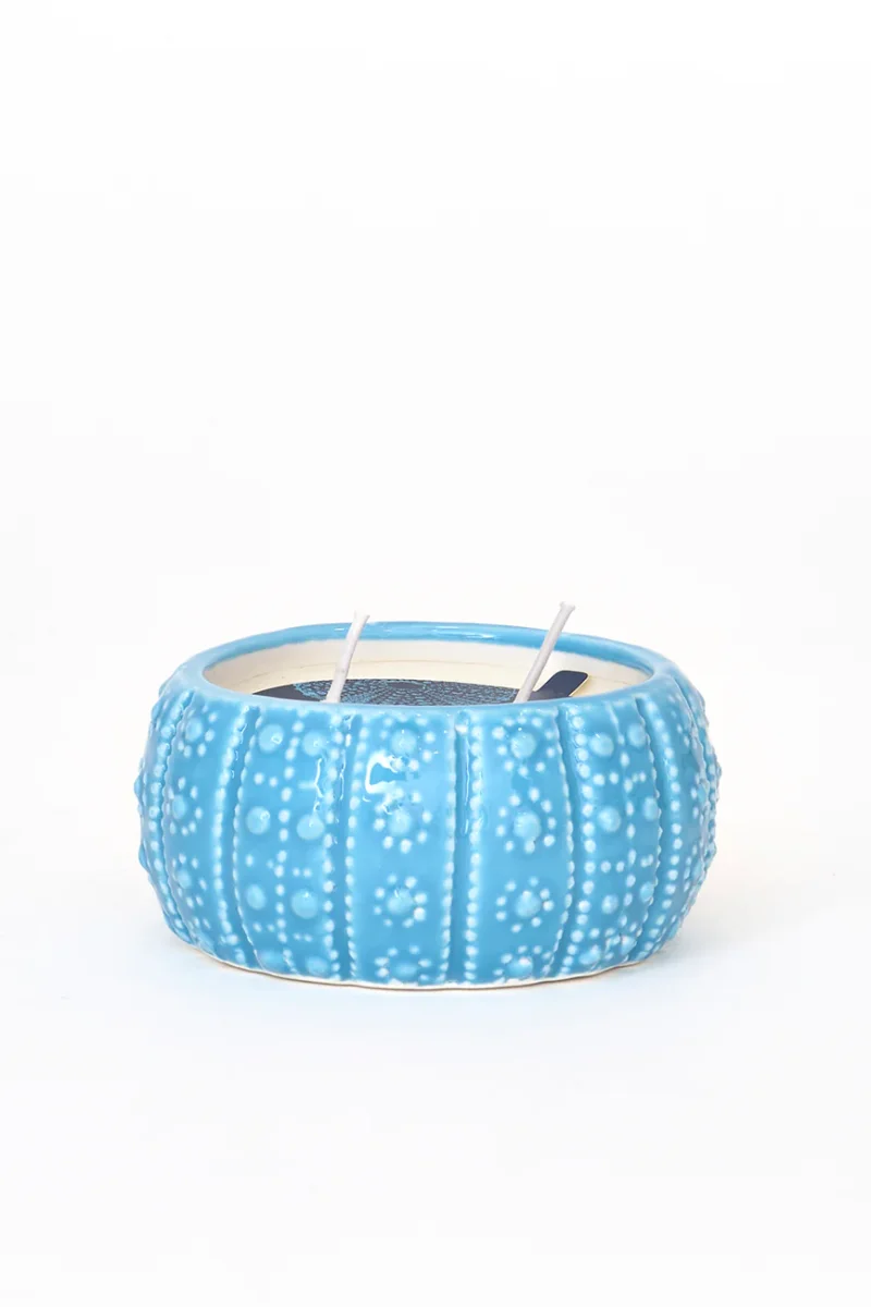 Erizo de mar elaborado en cerámica que contiene una vela en su interior. Su diseño aporta un aire marino y decorativo. Ideal para crear ambientes cálidos y acogedores.
