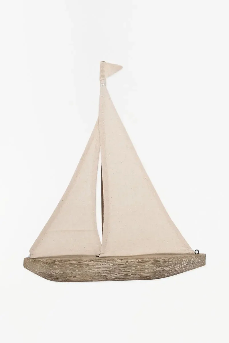 Velero hecho de madera, con vela de tela, para decorar pequeños espacios