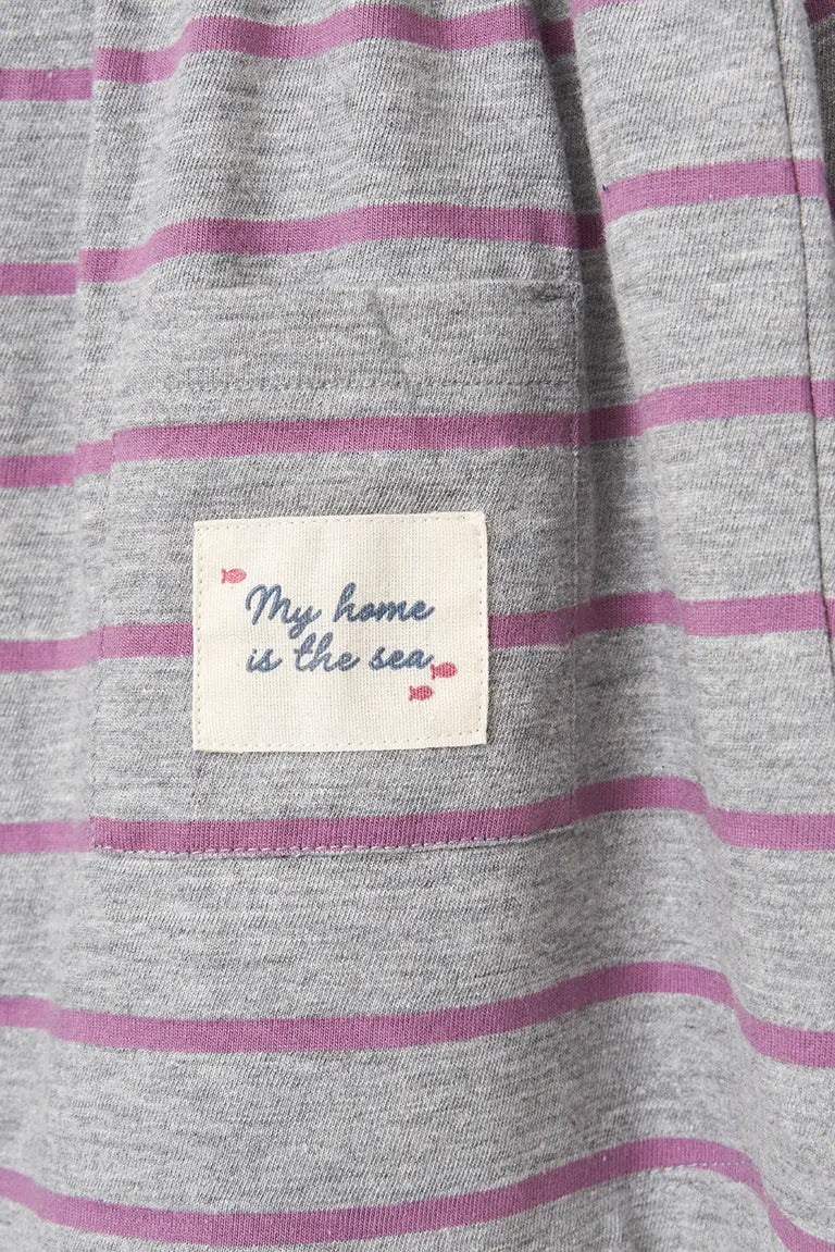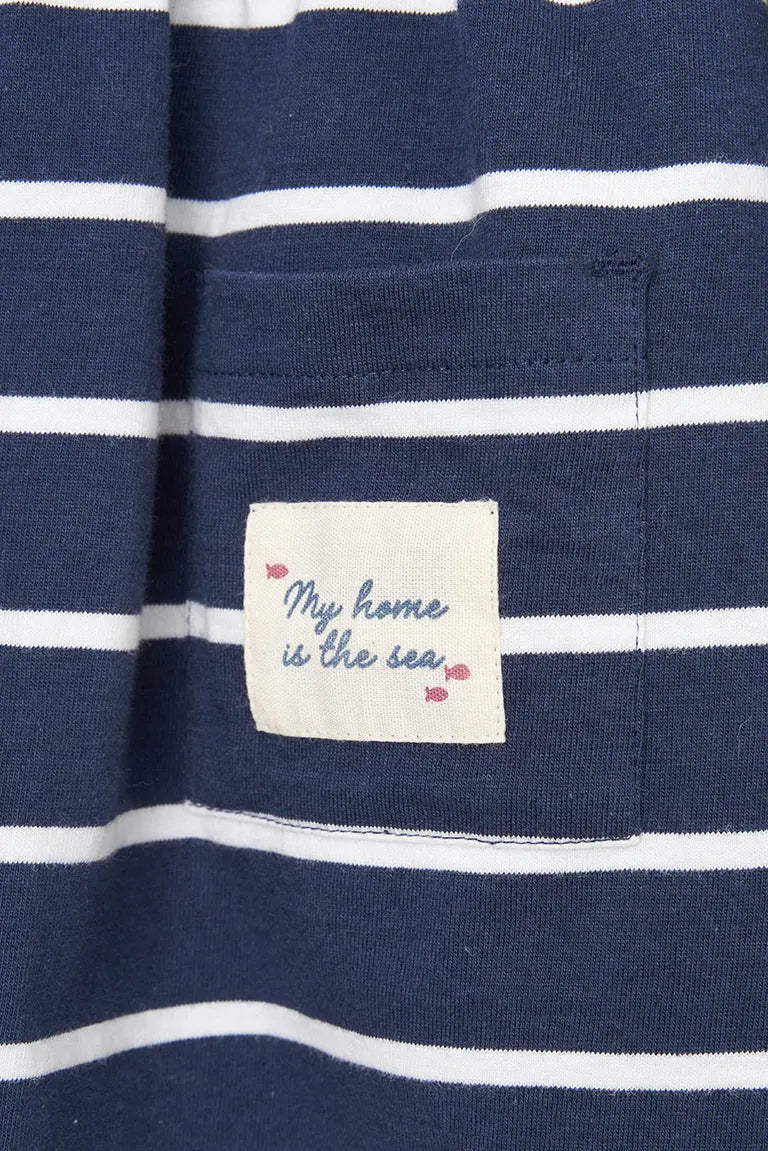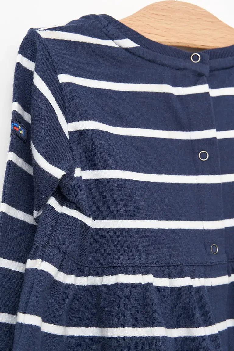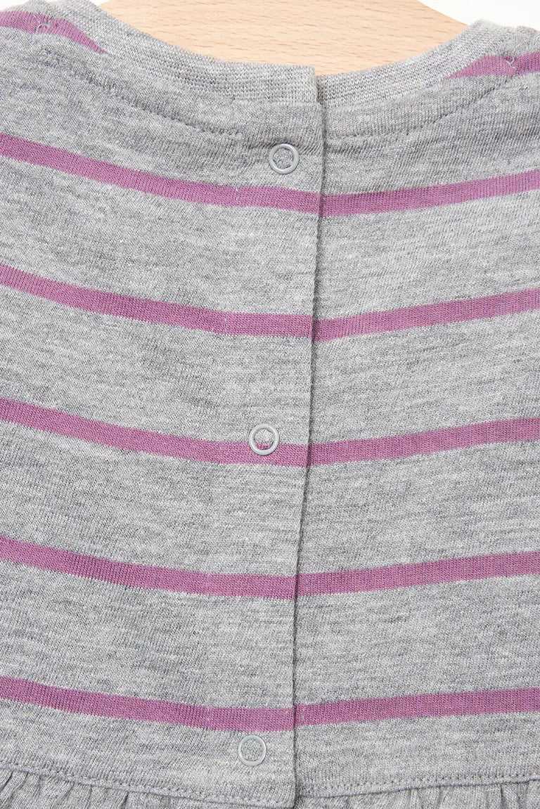 Vestido de bebé a rayas de manga larga confeccionado en algodón de 220 gramos. Un tejido cálido y duradero perfecto para el invierno.