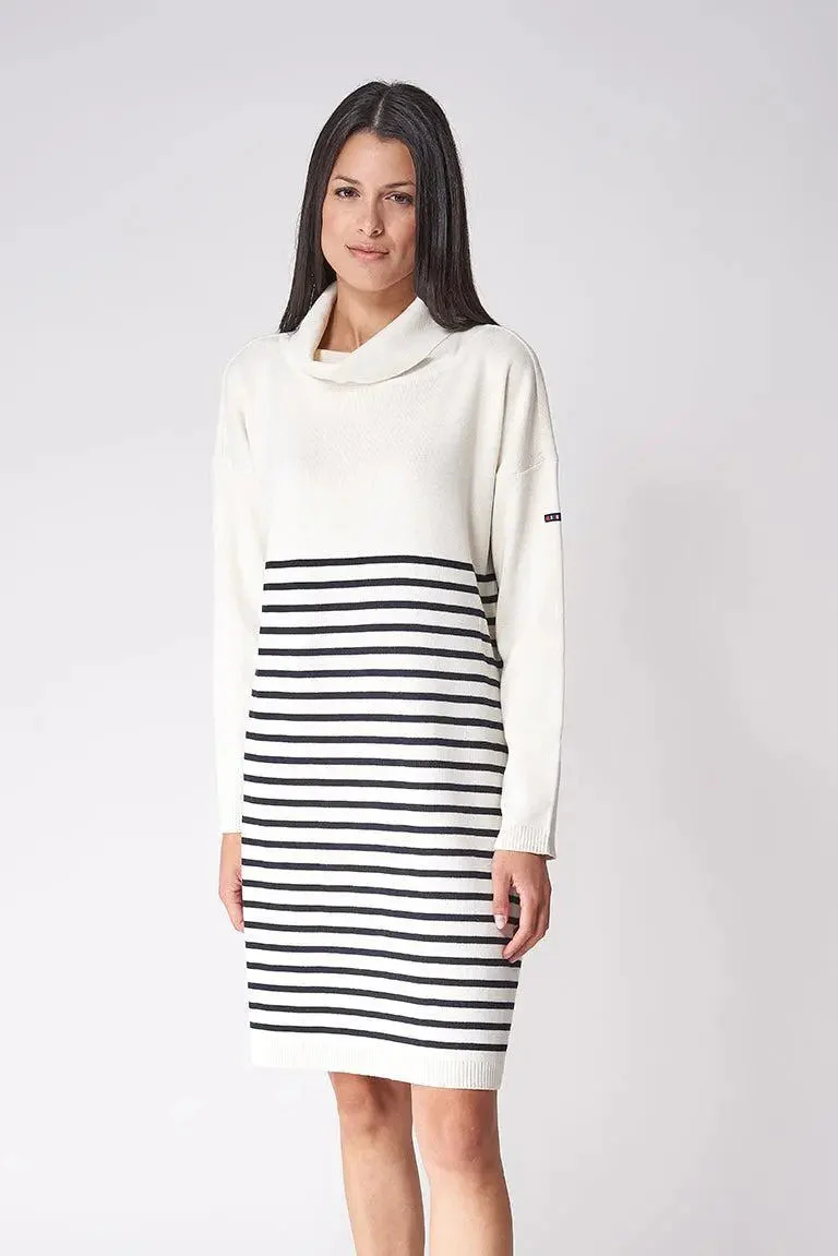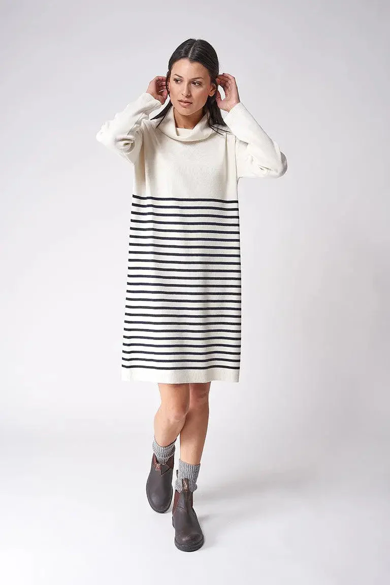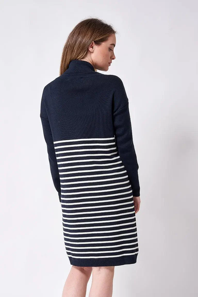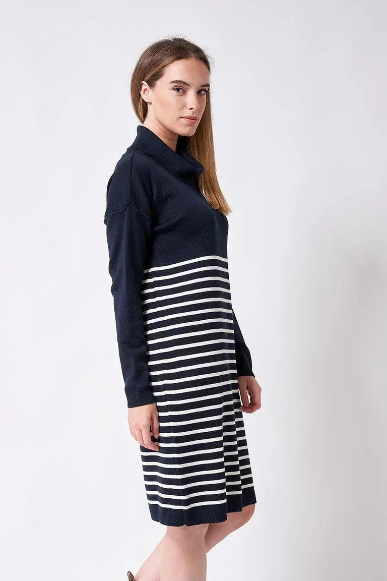 Vestido de lana a rayas de cuello alto