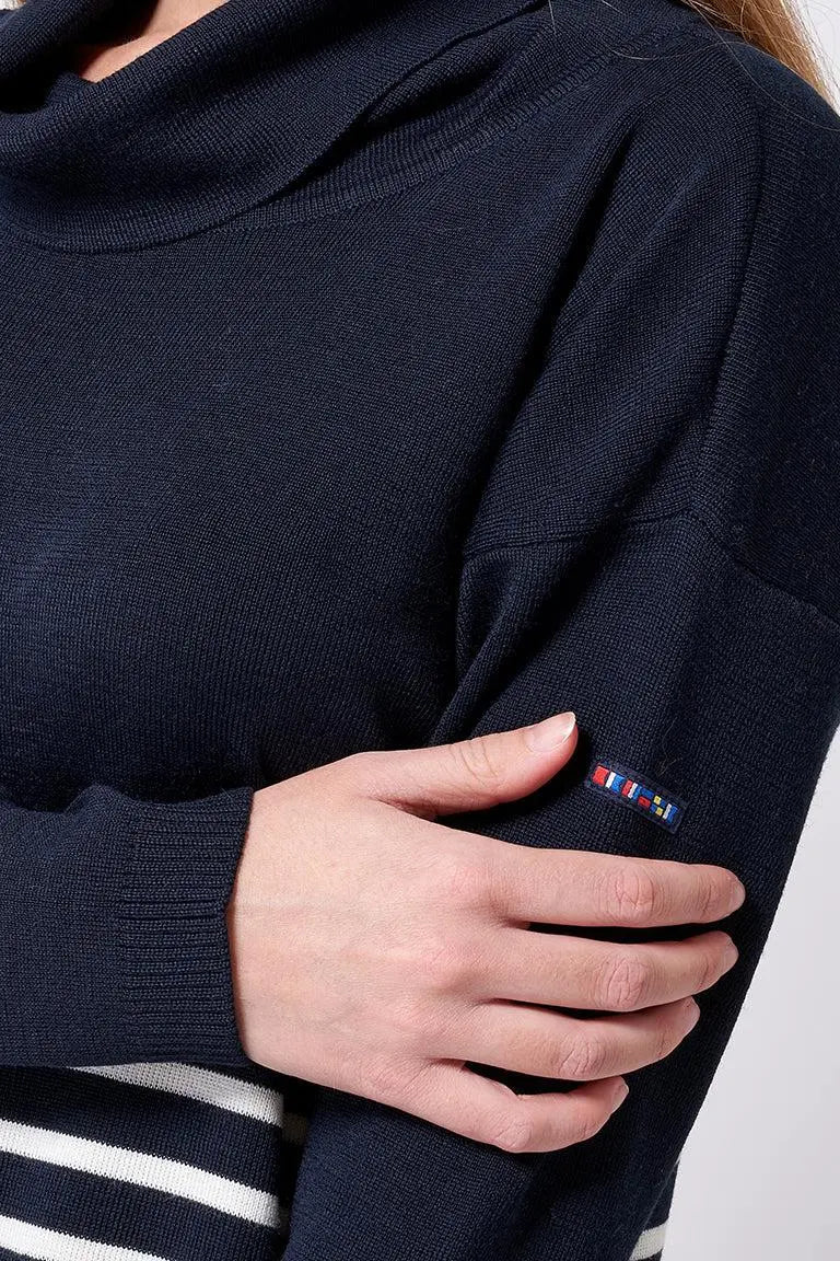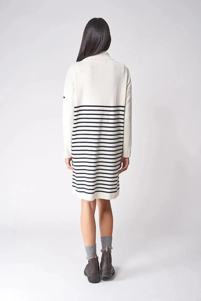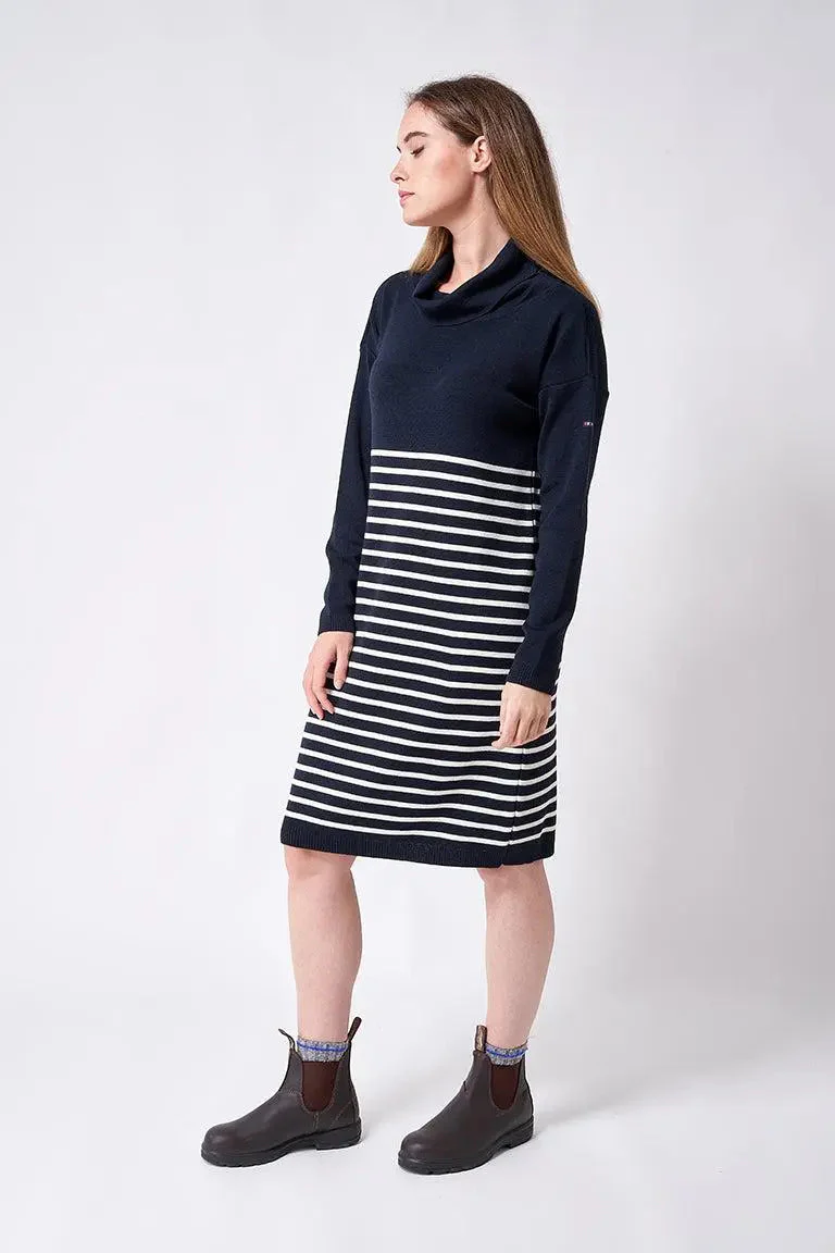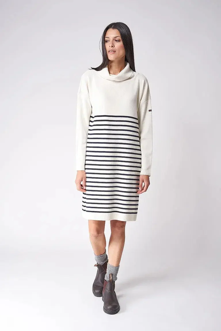 Vestido de lana a rayas de cuello alto