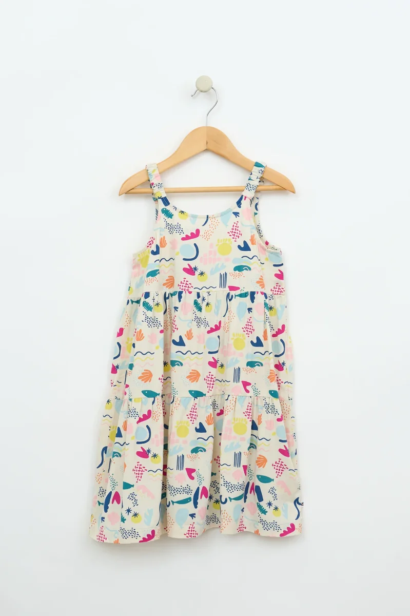 Vestido de tirantes para niña confeccionado en tejido 100% viscosa Ecovero.